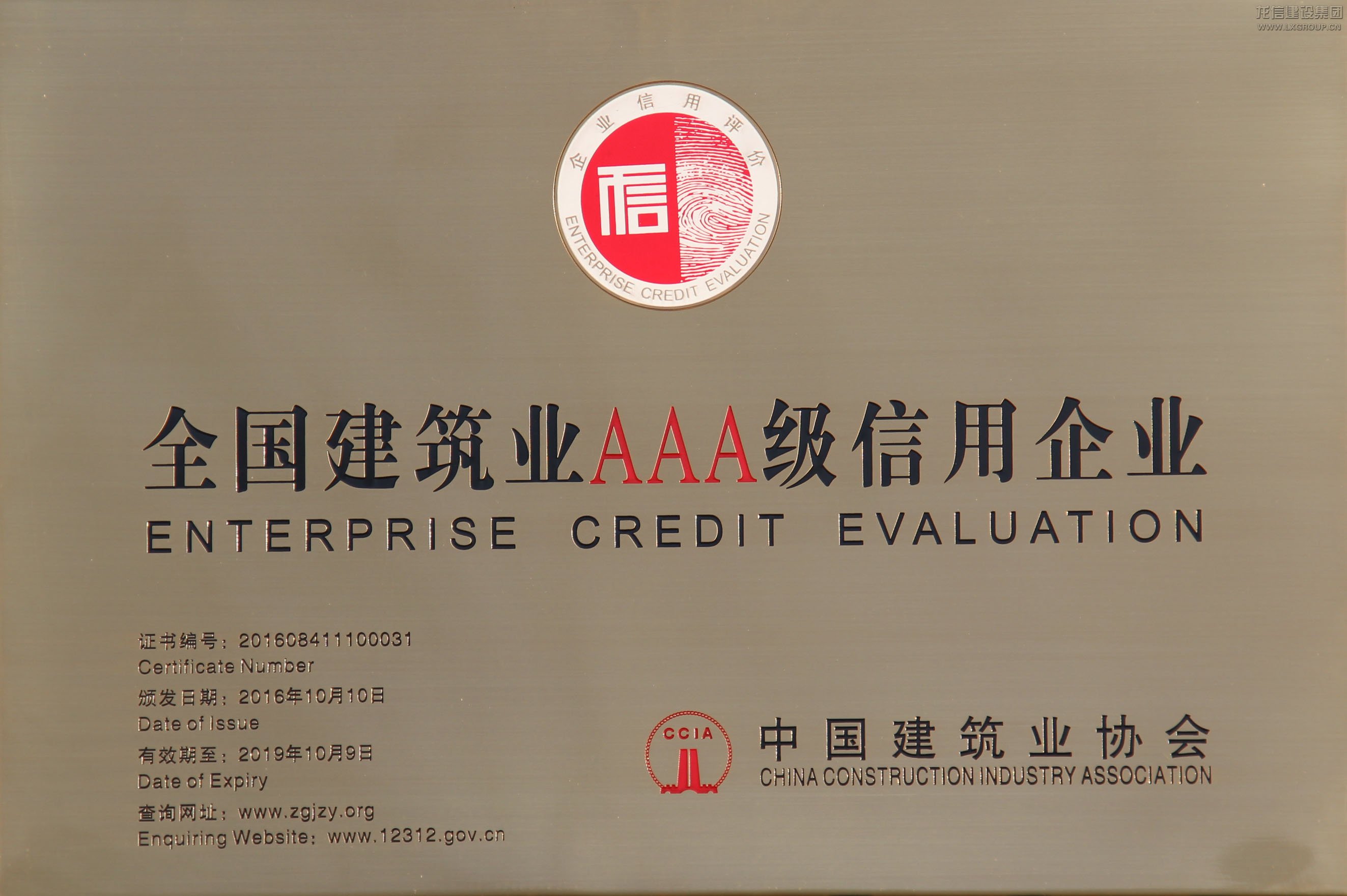 全國建筑業(yè)AAA級信用企業(yè)2016