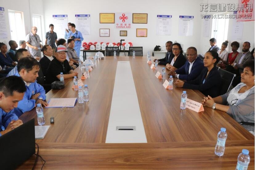 在會議室,杜大使簡短致辭,歡迎席爾瓦總理一行視察援佛得角新校區(qū)項(xiàng)目部,認(rèn)為總理先生到訪,對項(xiàng)目全體人員是一種巨大的鞭策和鼓舞。