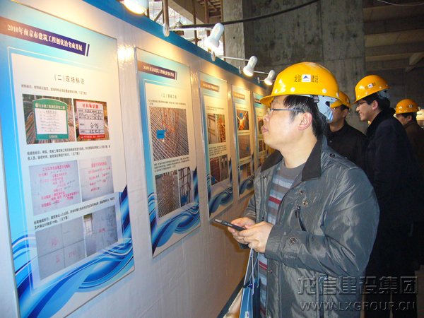 由江蘇省建設廳、南京市住建委和南京市質監(jiān)站組織,2011年2月22日建設部吳慧娟司長及隨行、省建設廳徐副廳長、省各市縣建工局、安監(jiān)站、質監(jiān)站領導300余人在南京市精品示范工程試點項目----龍信集團仁恒G53公寓項目部進行現(xiàn)場觀摩活動。集團公司董事長陳祖新、南京分公司經(jīng)理江建明、項目部陳揚、朱福生、蔡春燕、葛玉林、徐向華、李雪平、張沖、朱永新等同志陪同、解說。