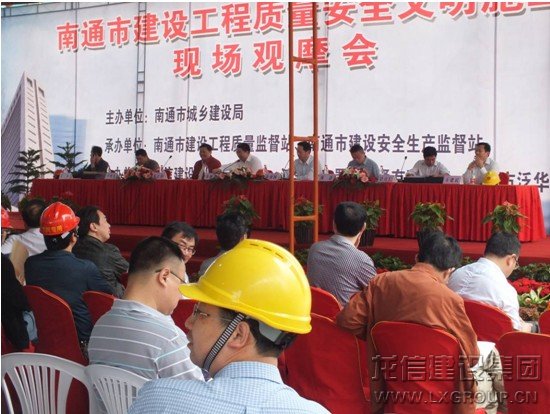 616上午,南通市城鄉建設局領導率南通市區及下屬縣市各大開發、施工、質檢、安監等公司和單位一行來到我公司南通運杰·龍馨園項目,對施工現場的質量、安全文明施工進行了觀摩交流并參觀了龍馨園售樓處、景觀示范區和現場樣板房。