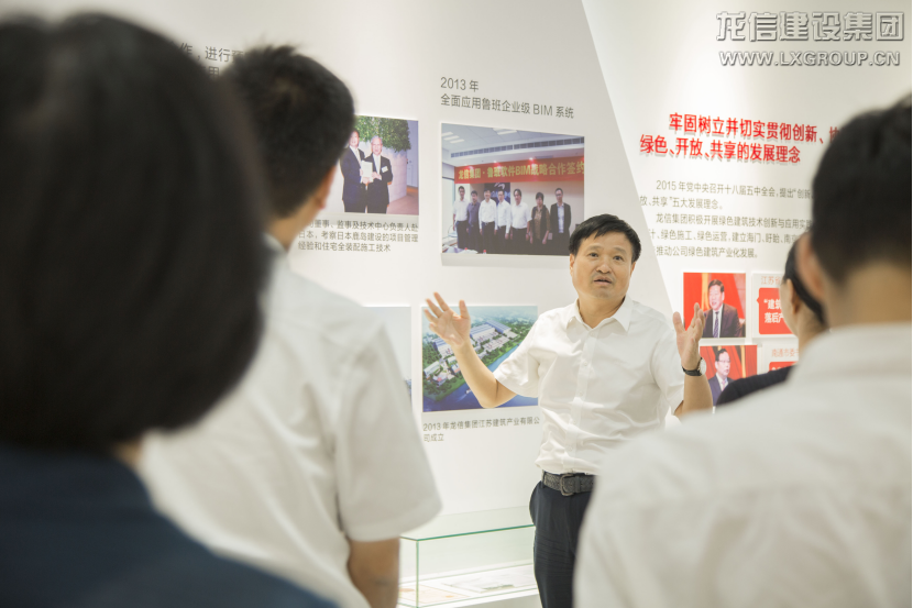志娟一行實地參觀了龍信館,聽取陳祖新董事長介紹公司產業工人隊伍建設改革的相關舉措和成效。為適應建筑產業現代化發展,龍信集團依托江蘇省智慧工程技術研究中心、科研單位、高等院校、龍信班等全方面、多渠道培養專業技能人才,同時選拔項目一線員工赴日本鹿島學習裝配式建筑技術,大力提升公司產業工人隊伍整體素質。近年來,龍信集團積極選拔專業人才參與十三五課題研究、國家標準、行業標準編制,努力將科技成果轉化為生產力,不斷提升企業核心競爭力。