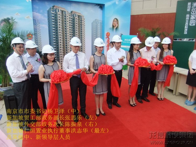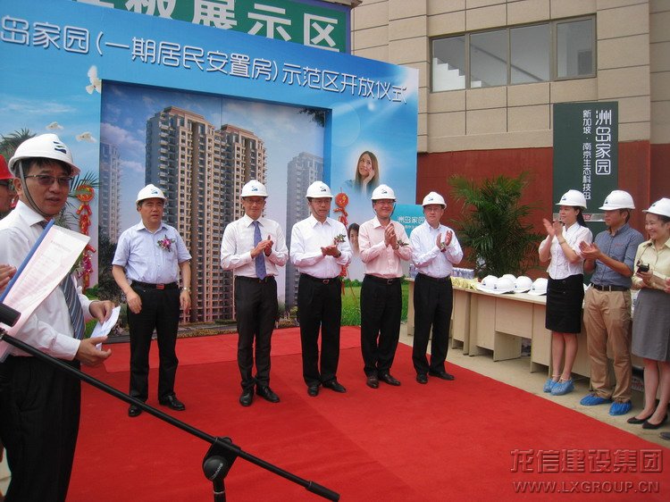 2013年8月22日上午,中共中央候補委員、江蘇省委常委、南京市市委書記楊衛澤等一行與新加坡貿工部政務部長張思樂、新加坡外交部政務次長陳振泉等政務領導為江心洲在建項目南京生態科技島一期安置房樣板區剪彩并推門掲幕。龍信建設集團南京生態科技島項目經理范建剛全程陪同參觀并做工作匯報。