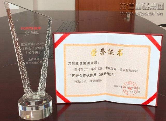 2015年12月7日,復(fù)地集團(tuán)在上海浦東星河灣酒店舉行2015年復(fù)地集團(tuán)合作商大會(huì)。龍信集團(tuán)二分公司二部施建昌經(jīng)理應(yīng)邀參加大會(huì),并榮獲“優(yōu)秀合作伙伴獎(jiǎng)(戰(zhàn)略類)”。